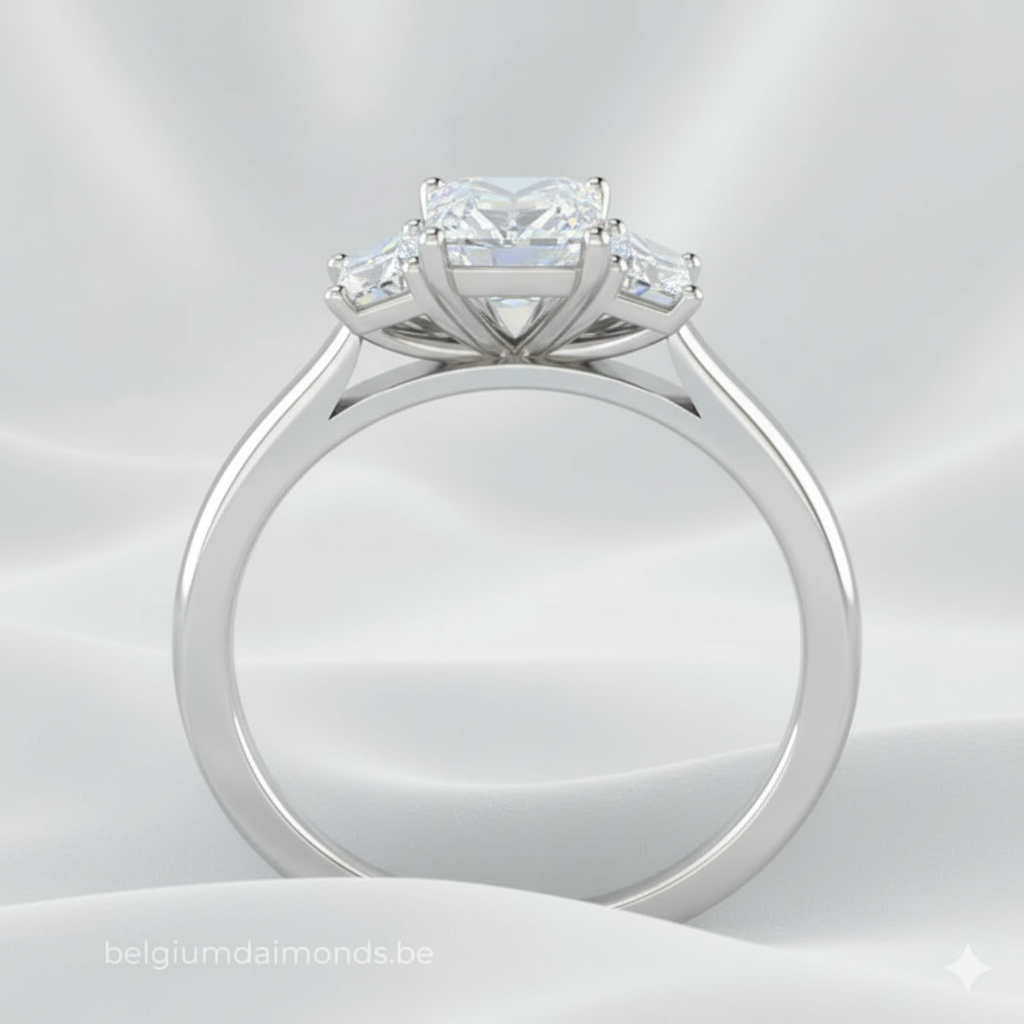 Αφού επιλέξετε αυτό το πλαίσιο, επιλέξτε τα διαμάντια σας από τα χιλιάδες πιστοποιημένα διαμάντια που εμφανίζονται στη συλλογή μας με τα χύμα διαμάντια. Εάν χρειάζεστε βοήθεια στην επιλογή σας, επικοινωνήστε με έναν εκπρόσωπο της Belgium Diamond και οι γεμολόγοι της Belgium Diamonds θα ταιριάξουν σχολαστικά τα διαμάντια ως προς το μέγεθος, το χρώμα, τη διαύγεια και την κοπή για να δημιουργήσουν ένα τέλειο δαχτυλίδι με τρεις πέτρες που θα ανταποκρίνεται στον προϋπολογισμό και τα κριτήριά σας.