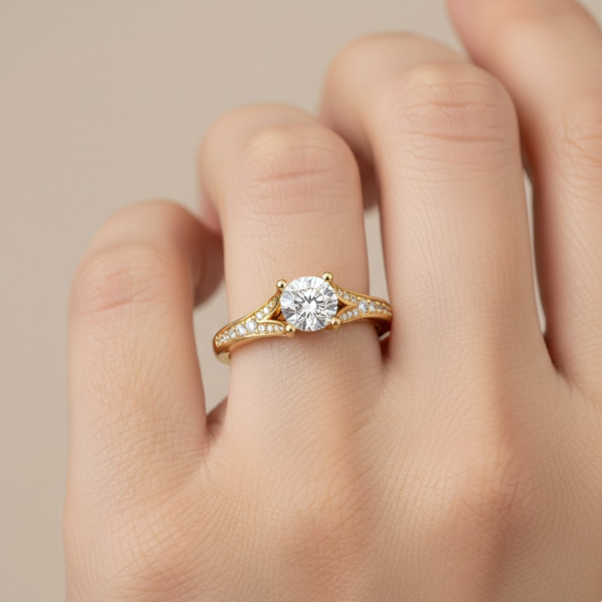 Split Shank Round Side Stone Solitaire Ring