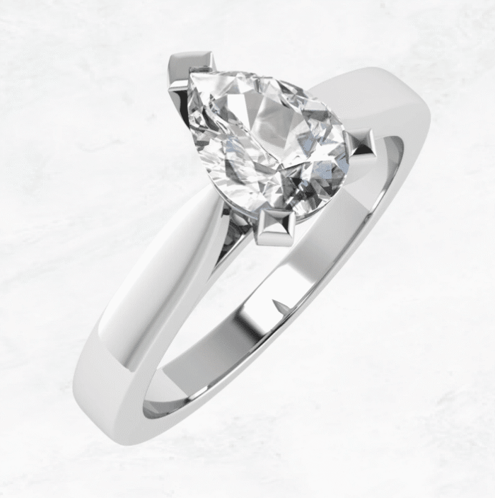 Belgium Diamonds Pear Diamond Ring Setting is a 18k gold setting with a stylish tapered shoulders.