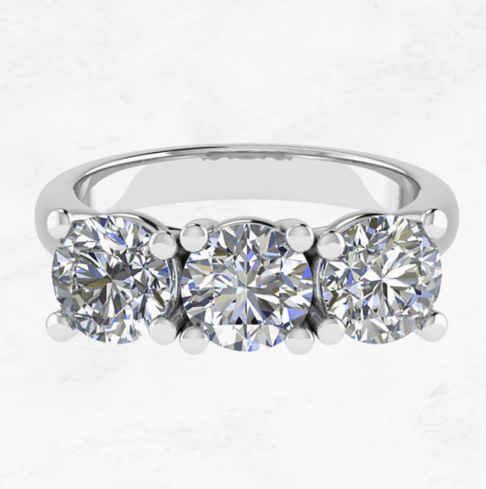 After selecting this setting, choose your diamonds from the thousands of certified diamonds displayed in our loose diamond collection. If you need assistance in your selection, contact a Belgium Diamond representative and the gemologists at Belgium Diamonds will meticulously match diamonds for size, color, clarity and cut to create a perfect three stone diamond ring meeting your budget and criteria.