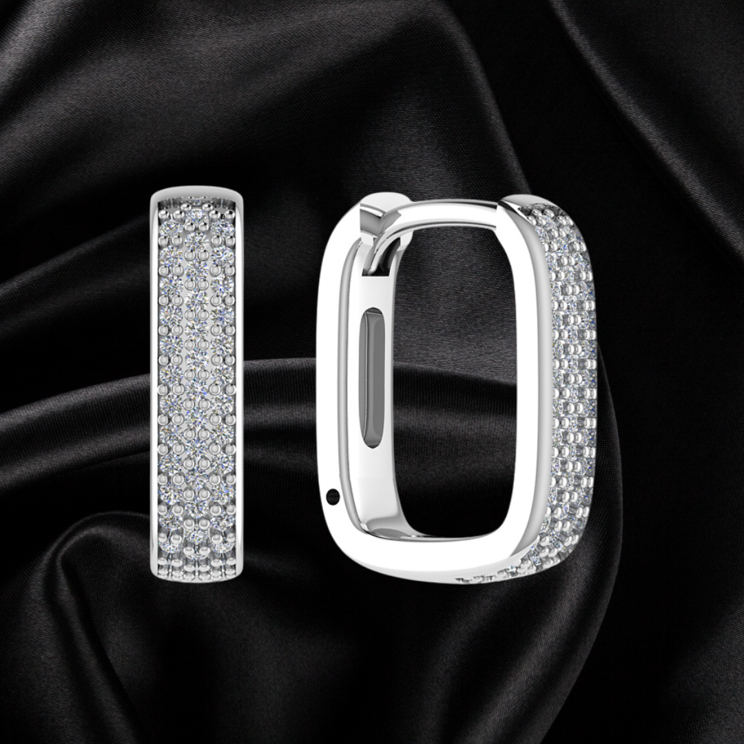 Looking to add a touch of elegance to your jewelry collection with non-traditional earrings? Look no further… here are our Bombay Pavé Earring. These Rectangular Créole Earrings are the perfect addition to any ready-to-wear collection, effortlessly elevating any look with their Modern design.