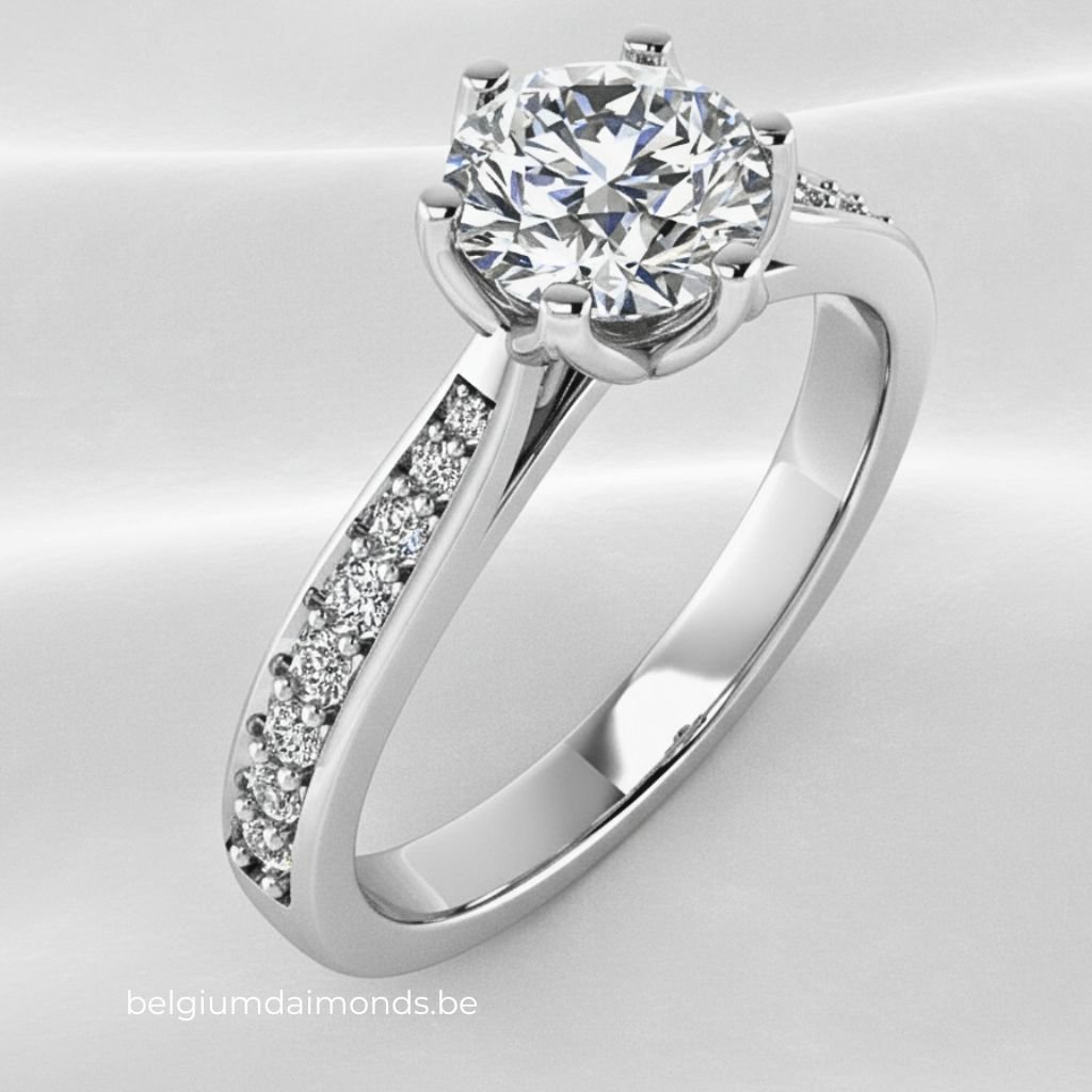 Belgium Diamonds 6-Prong Pavé Solitaire Ring in lotus style beautiful setting.
