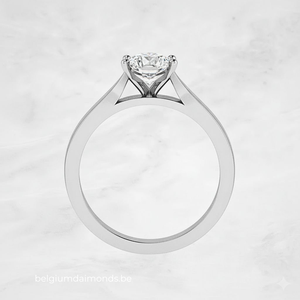 L'anello solitario con taglio a marquise di Belgium Diamonds presenta un'elegante fascia in oro 18 carati dal design elegante e moderno, che mette in risalto uno splendido diamante a forma di marquise in una sicura montatura a 4 punte. Il taglio allungato esalta l'aspetto del dito, aggiungendo un tocco di raffinatezza senza tempo.