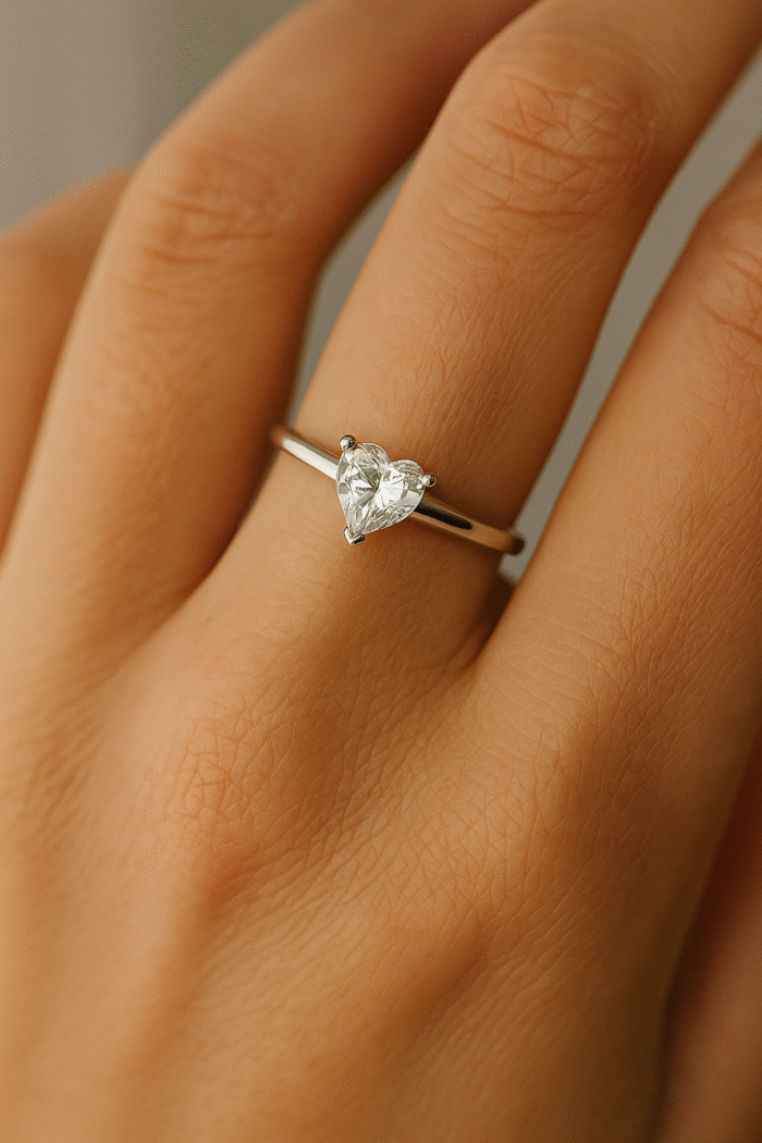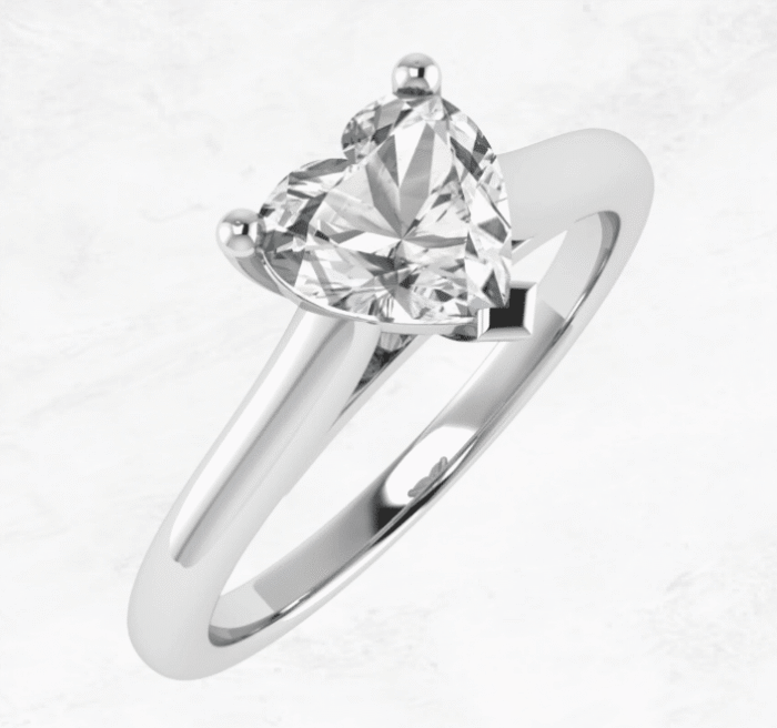 Belgium Diamonds Heartshape Solitaire Diamond Ring is an 18k gold mounting with a stylish band enhancing the center stone.