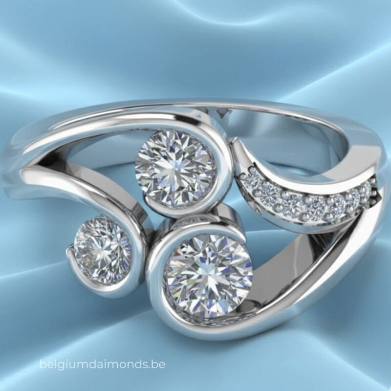 Belgium Diamonds Classic Three Diamond Ring Setting is an elegant trilogy ring. This beautiful setting perfectly matches three round brilliant shape diamonds to create an exquisite jewel.