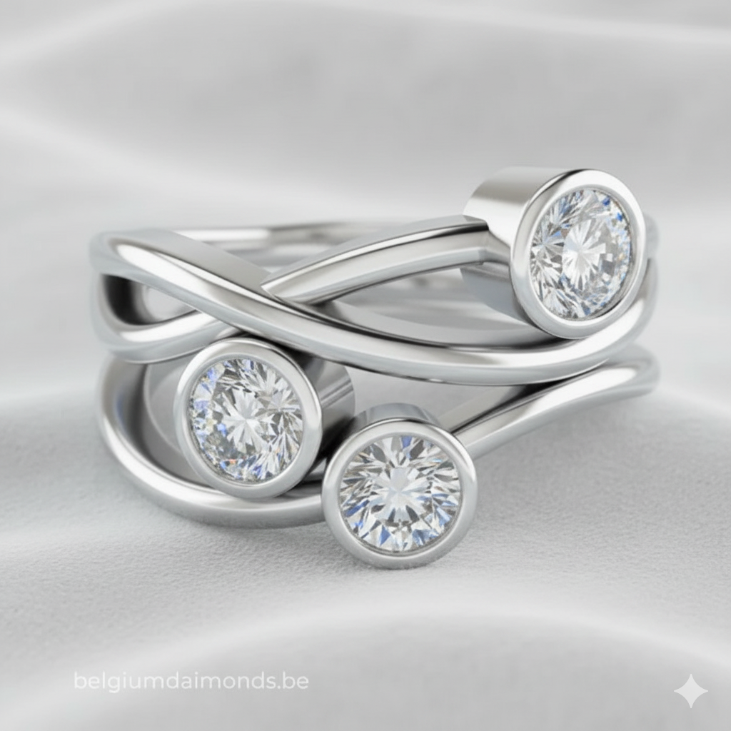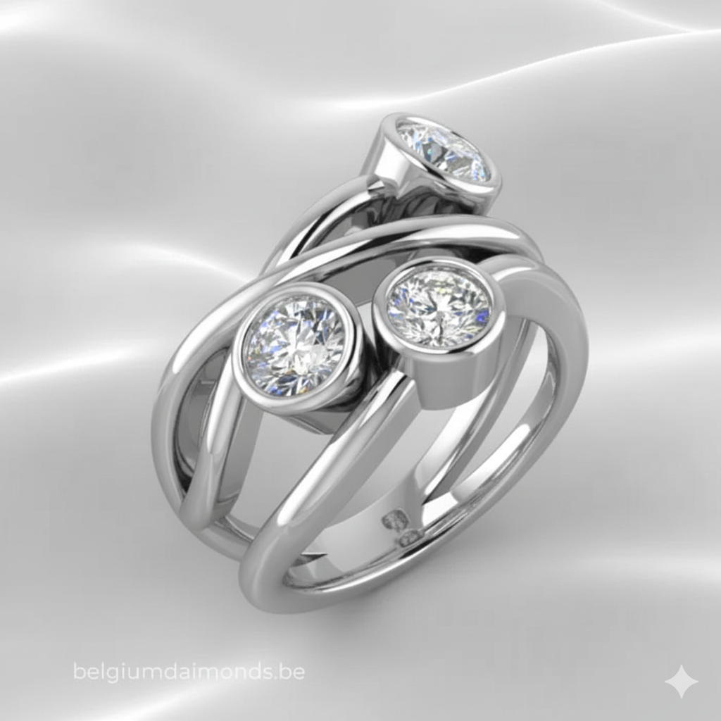 Drieluik Ring met Ronde Diamanten Zelfde Maat