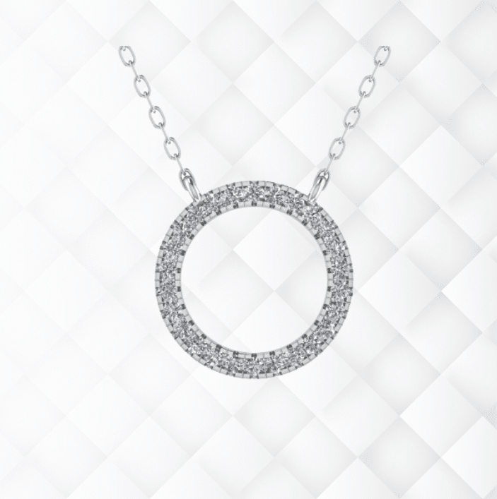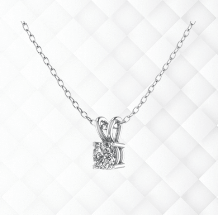 Our pendant features a brilliant round diamond, securely held in place by four prongs, creating a timeless and versatile design that will never go out of style.