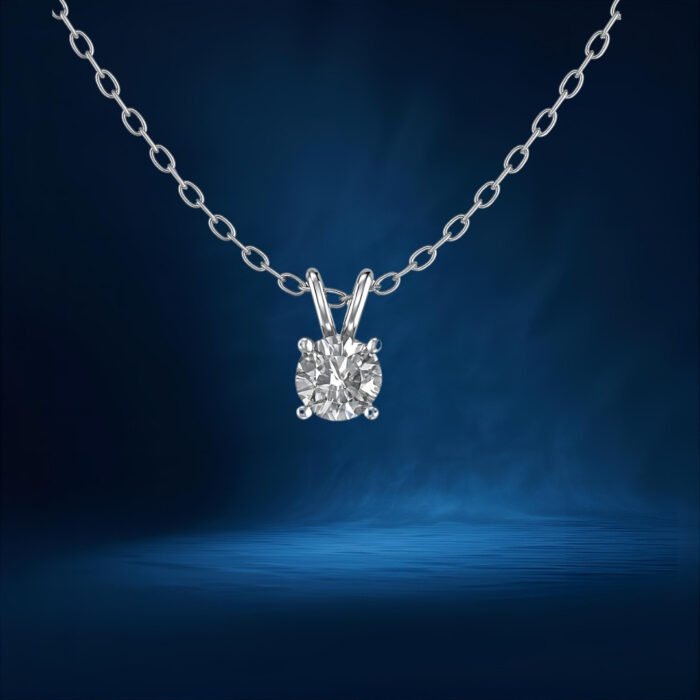 Our pendant features a brilliant round diamond, securely held in place by four prongs, creating a timeless and versatile design that will never go out of style.
