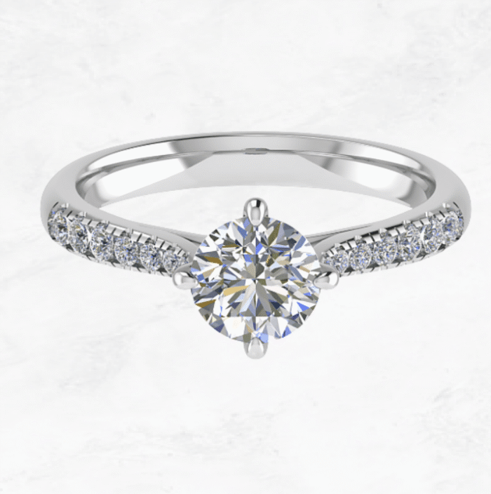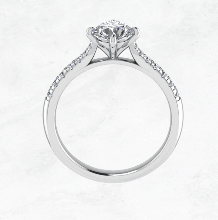 Elegant Brilliant Cut Solitaire with Pavé in Cathedral Setting