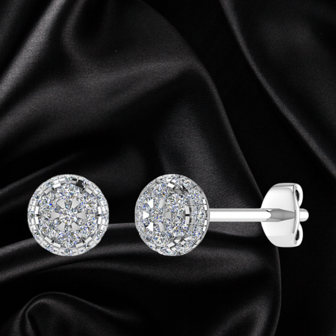 Embrace timeless beauty with our Eternal Sparkle Diamond Studs. Featuring a captivating round design adorned with meticulously set diamonds, these earrings radiate brilliance from every angle.