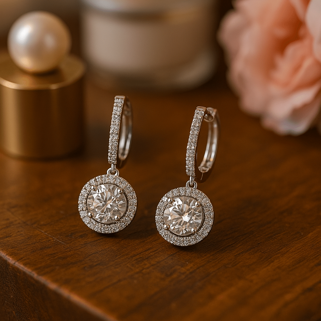 Crafted in 18K white gold, these earrings are the perfect blend of glamour and grace — ideal for weddings, evening wear, or the modern woman who appreciates refined luxury.