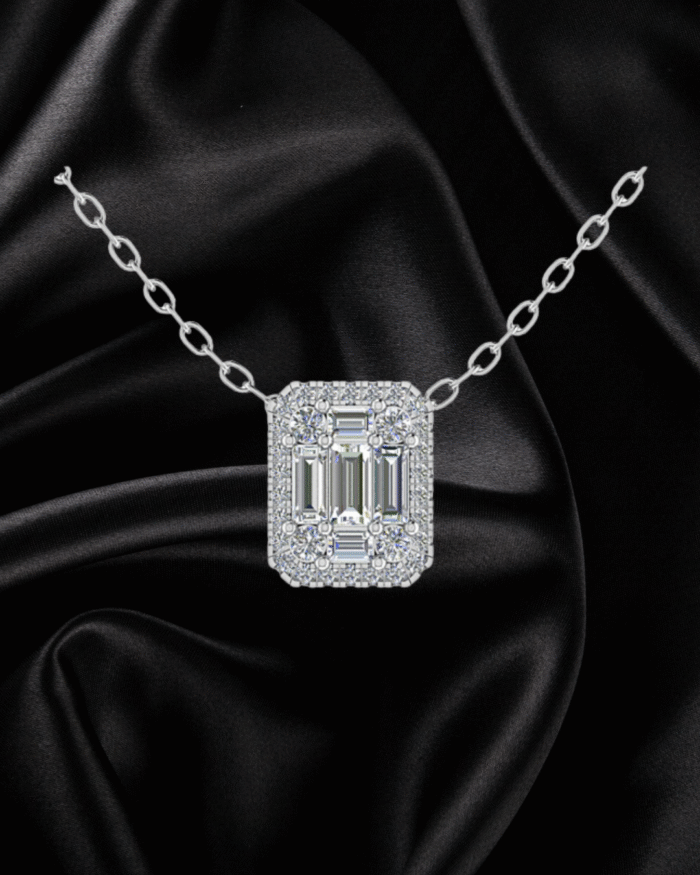 The Ready-to-wear Pendant with Baguette Diamond is a stunning and classic piece of jewelry that will add elegance and sophistication to any outfit. Meticulously crafted with an 18k gold stylish chain available in white, yellow, or rose gold, this pendant features brilliant baguette diamonds, securely held in place by three prongs, creating a timeless and versatile design that will never go out of style.